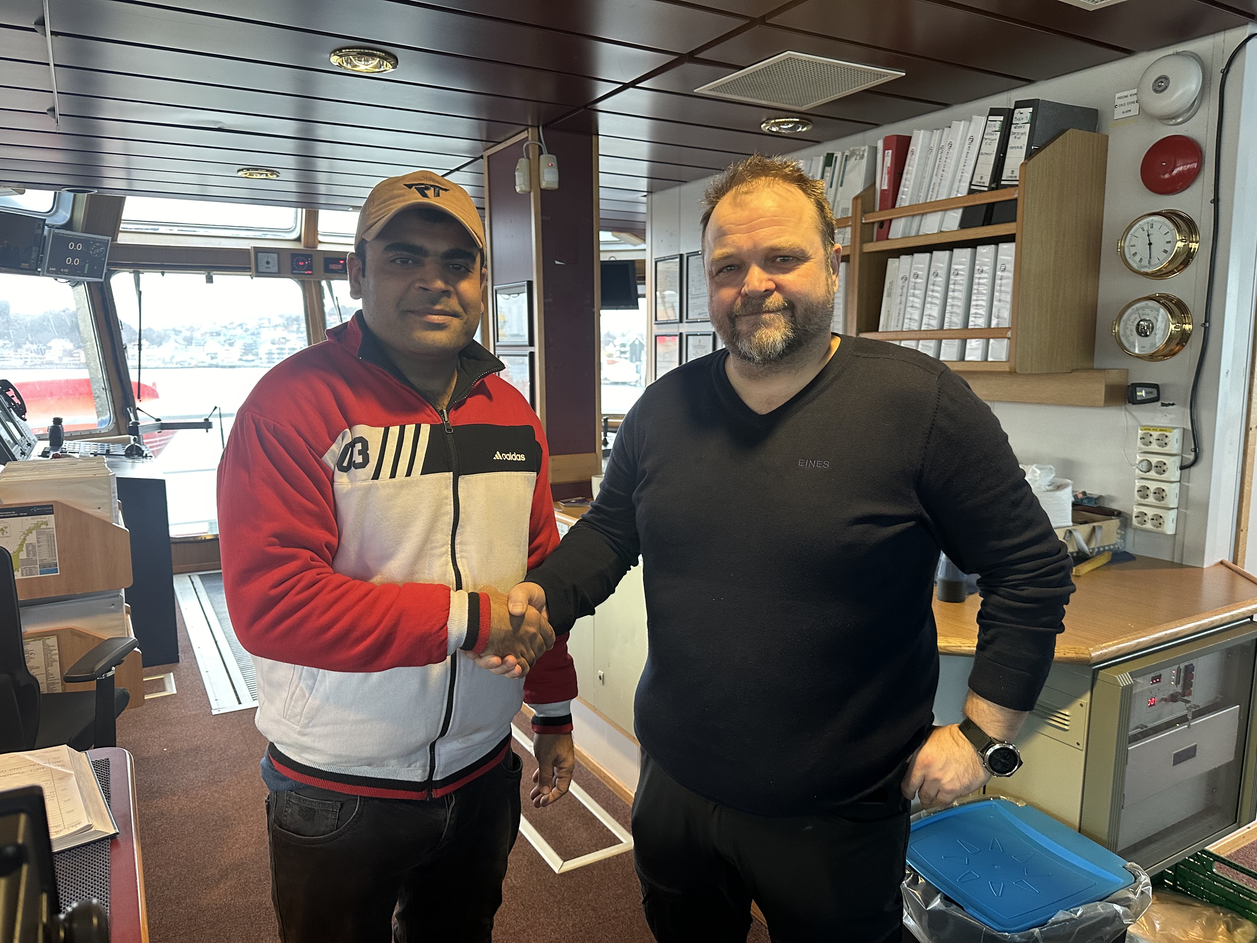 01.feb 2024 klokken 10:45 overleverte Kaptein Frode Roksvåg skipet til den Indiske kapteinen fra rederiet SMO (Samundar Manthan Offshore)